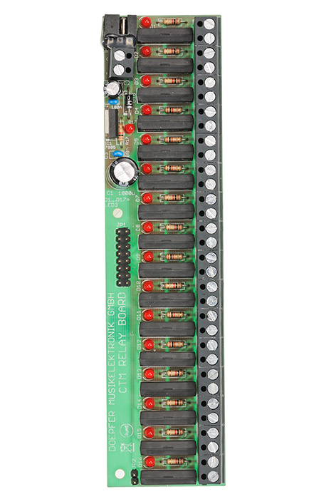 Das CTM Relay Board ist ein Erweiterungsplatine für die universell einsetzbare MIDI-Steuerelektronik CTM64.