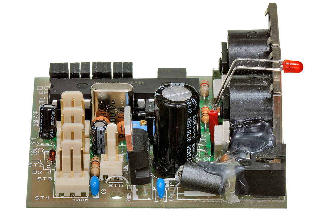 WE ist nur als fertig aufgebaute und geprüfte Platine ohne Gehäuse lieferbar. Die Platinengröße beträgt ca. L60 x B55 x 30H (Maße in mm). Auf der Platine befinden sich mehrere Löcher mit 3 mm Durchmesser zur Montage der Platine auf einer geeigneten Unterlage (z.B. mit M3-Abstandsbolzen). Die Stromversorgung erfolgt über ein externes Steckernetzteil (7-12V Gleichspannung / min. 100mA). Dieses ist im Lieferumfang enthalten (230V-Version mit Eurostecker). Für den Einbau bzw. den Anschluss des WE-Fertigmoduls sind elektronische Grundkenntnisse erforderlich! Falls Sie selbst hierüber nicht verfügen so sollten Sie einen Fachmann zu Rate ziehen.